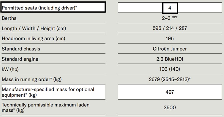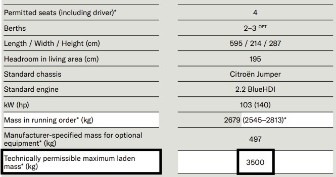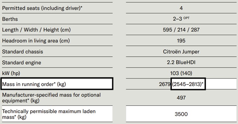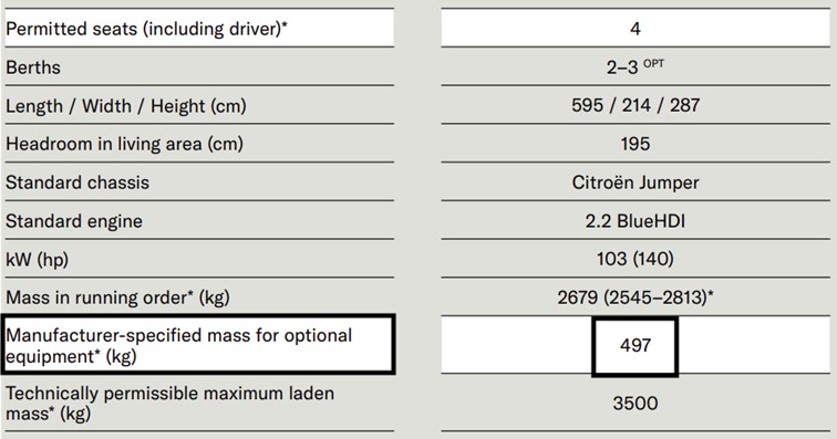 ... is a value set by the manufacturer which the vehicle may not exceed. Sunlight specifies a layout-related upper limit for the vehicle, which can vary from layout to layout (e.g. 3,500 kg, 4,400 kg). You can find the corresponding specification for each layout in the technical data.